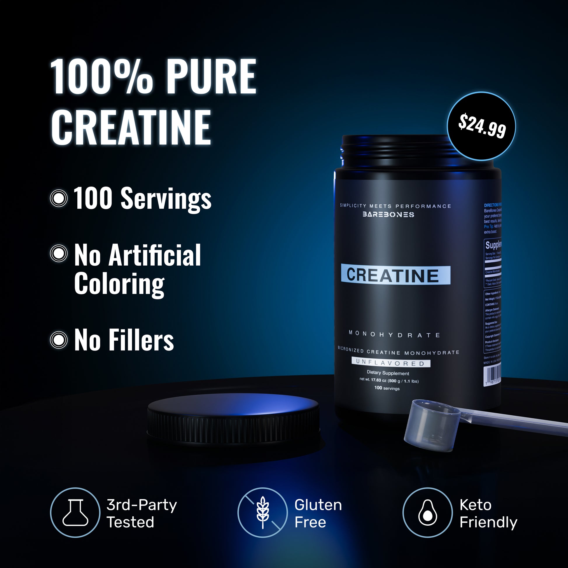 - 100% Pure Creatine Monohydrate